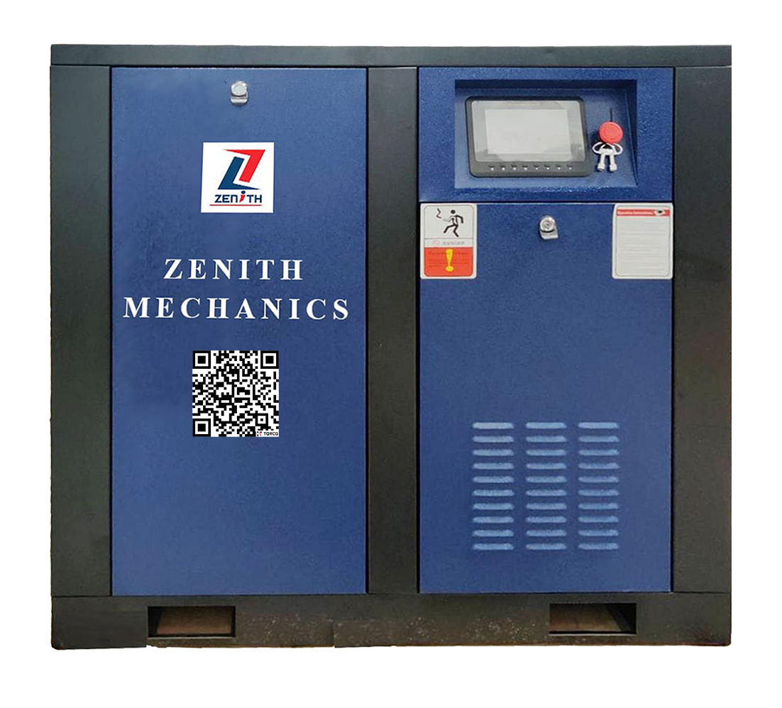Zenith Mechanics permanent magnet VSD Screw Air Compressor is trending in the industry because of its energy saving and high efficiency! it can directly bring the electricity cost down by 20% to 40%. The compressor delivers only the required air flow and consumes required only. When air consumption is low, the air compressor will automatically run at lowest speed and save much energy.